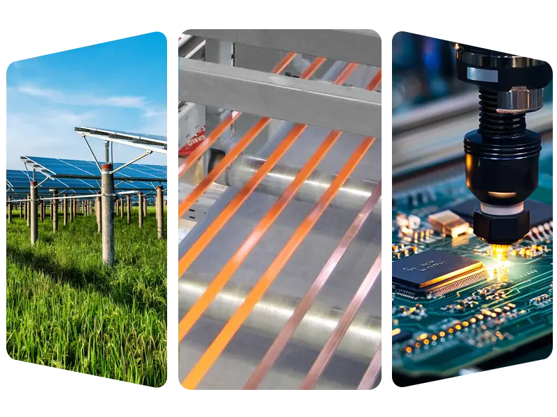 • Ֆոտովոլտային դաշտ. ֆոտոգալվանային եռակցման ժապավենների և շղթաների զանգվածային արտադրություն, որոնք կօգնեն բաղադրիչներին արդյունավետ կերպով վարել էլեկտրաէներգիան: